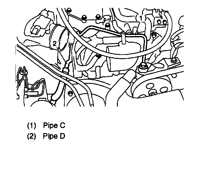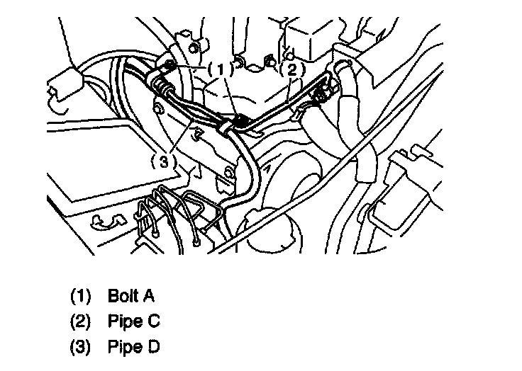 2. Remove the two bolts fixing pipe C and D.