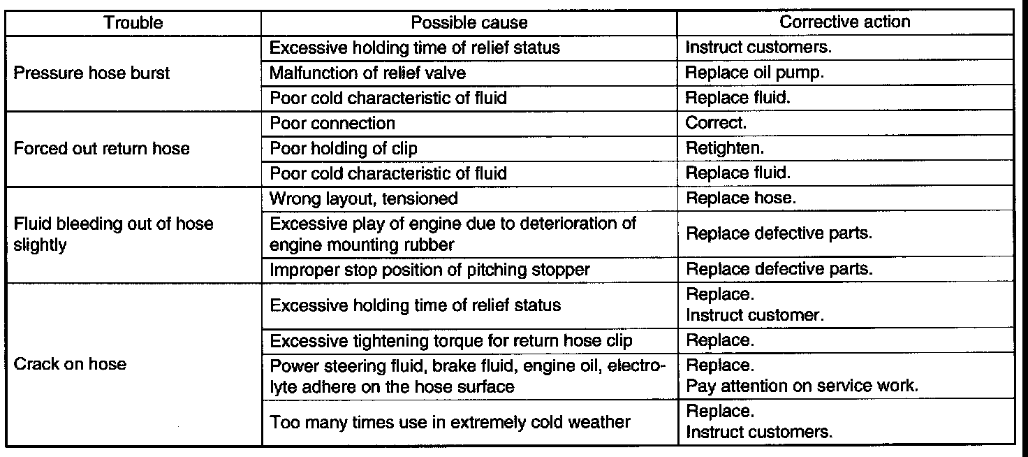 Since resistances for heat or low temperature brittleness are gradually declining according to time accumulation of hot or cold conditions for the hoses and their service lives are shortening accordingly, it is necessary to perform careful inspection frequently when the vehicle is used in hot weather areas, cold weather area and/or a driving condition in which many steering operations are required in short time.