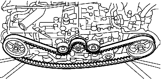 CAUTION: INTERFERENCE ENGINEWhen installing the timing belt, be sure to align all alignment marks on the belt with corresponding marks on the sprockets. If incorrectly installed, interference between pistons and valves may occur.