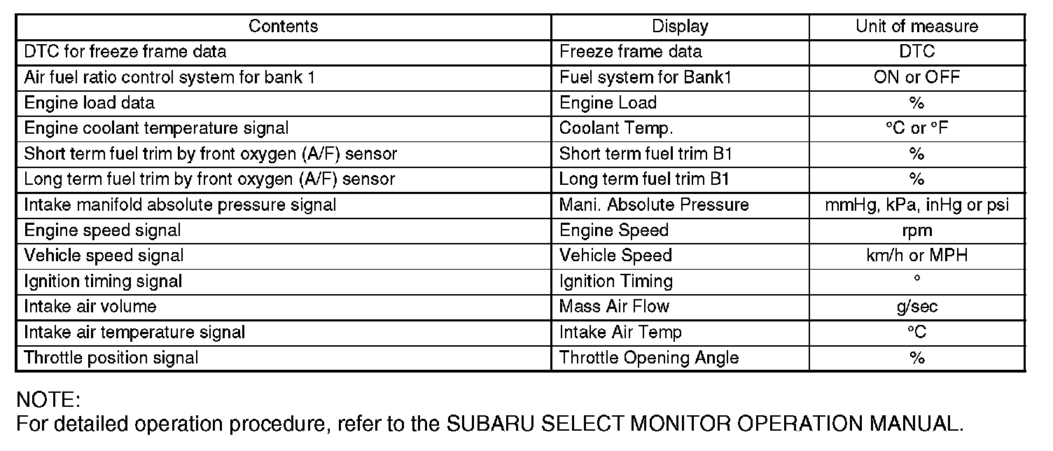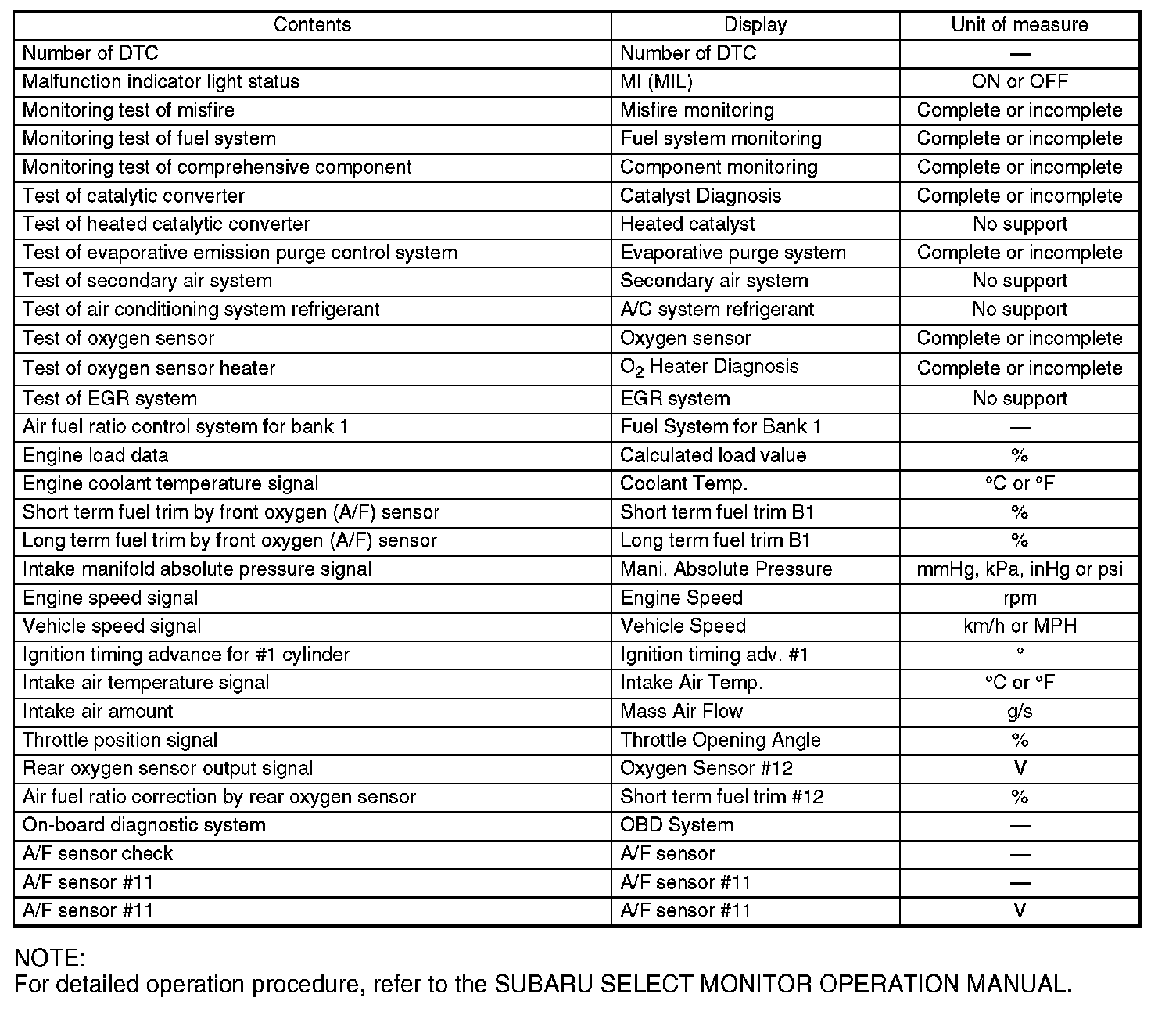 6. Using the Subaru Select Monitor, call up DTC and various data, then record them.