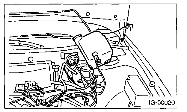2. Remove the two bolts which hold washer tank, and then disconnect the washer motor connector.