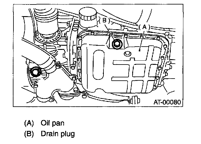 NOTE: Tighten the ATF drain plug after draining the ATF.