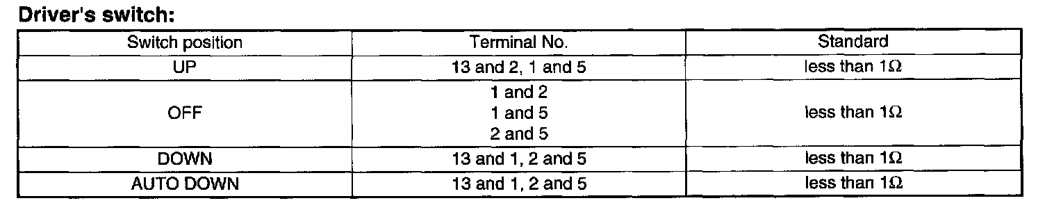 Power Window Switch: Testing and Inspection