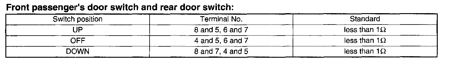 Front passenger's door switch and rear door switch: