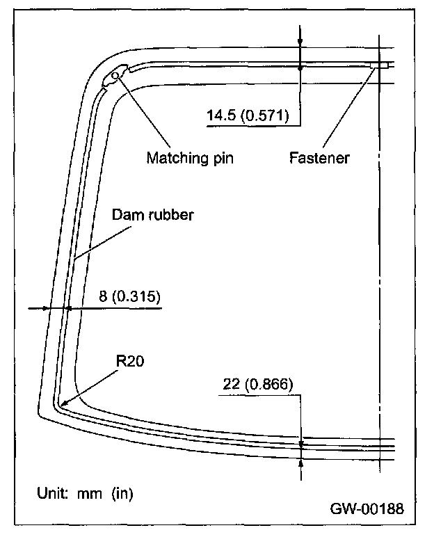 NOTE: For minimum drying time and time the vehicle must be left standing before driving after bonding, follow instructions or instruction manual from the adhesive manufacturer.