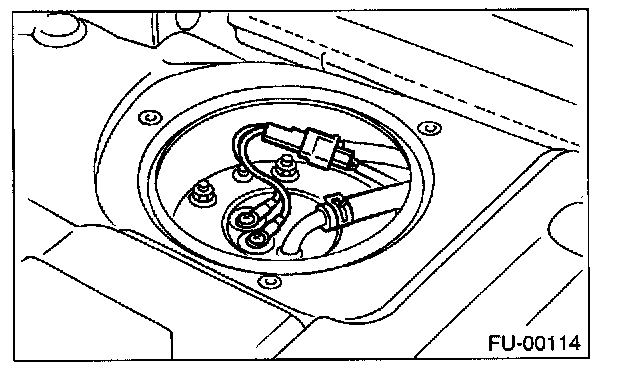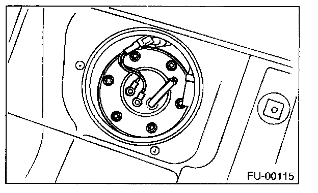 9. Remove the bolts which install the fuel sub meter unit on fuel tank.
