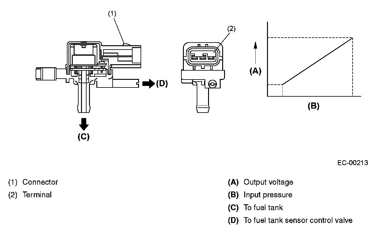FUEL TANK PRESSURE SENSORThe fuel tank pressure sensor is installed on the top of the fuel tank and measures the pressure in the fuel tank.