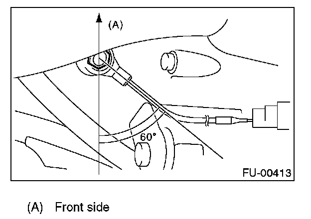 NOTE: The extraction area of the knock sensor cord must be positioned at a 60 ° angle relative to the engine rear.