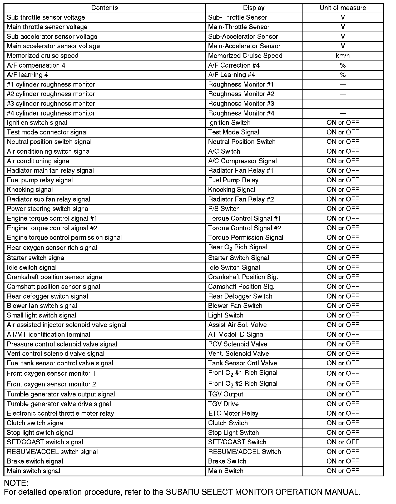6. Using the Subaru Select Monitor, call up DTC and various data, then record them.