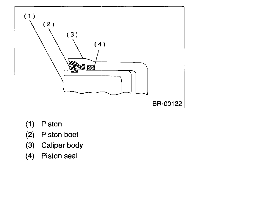2. Apply a coat of brake fluid to the piston seal and fit piston seal in groove on caliper body.