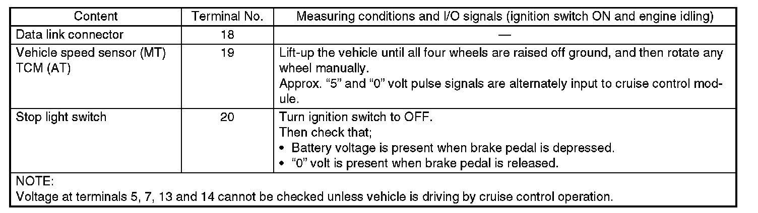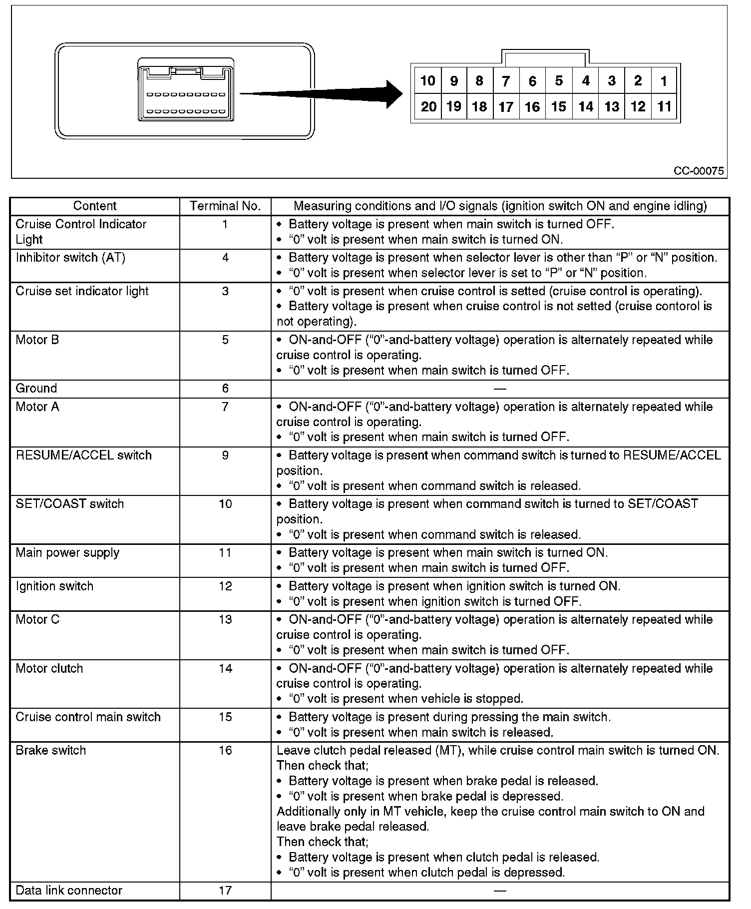 Pinout Values and Diagnostic Parameters