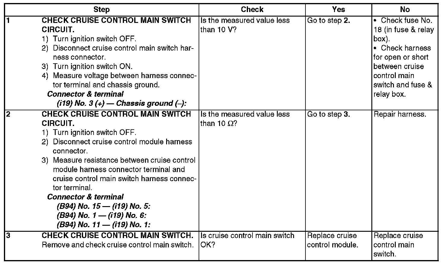 CHECK CRUISE CONTROL MAIN SWITCHTROUBLE SYMPTOM: