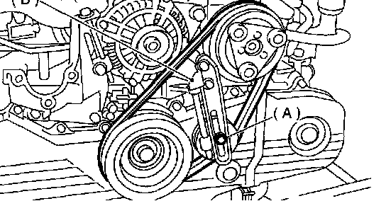 1. Install a belt, and tighten the slider bolt (B) so as to obtain the specified belt tension.