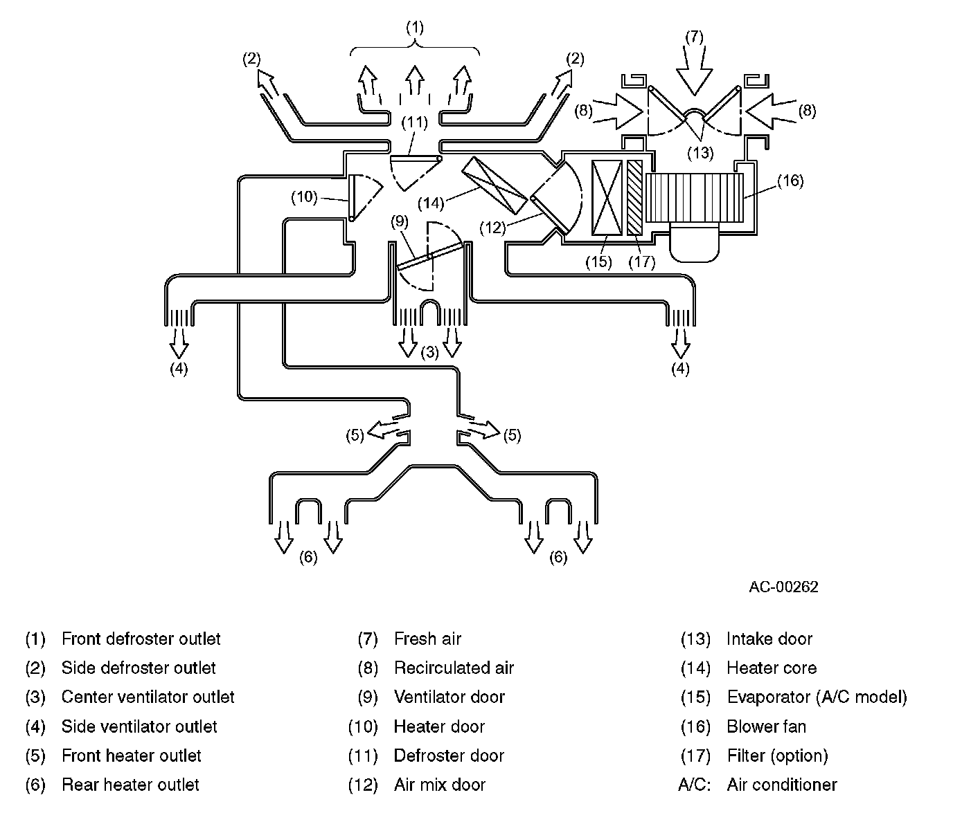 Fresh outside air is introduced into the cabin through the center and side ventilators when the blower fan is operated.