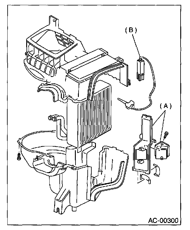 1. Remove resistor (A) and thermistor (B) from intake unit case.