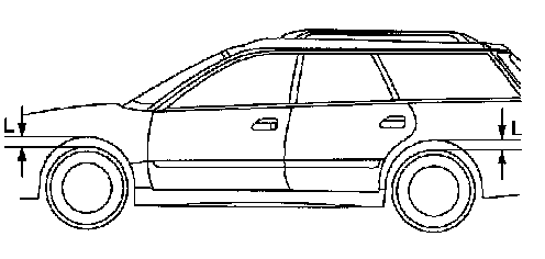 Measure distance L between tire highest point to arch highest point before tie-down and after tie- down. Difference of measurement value (drop height) shall be within 50.8 mm (2.00 in). Make sure to fix a vehicle securely.