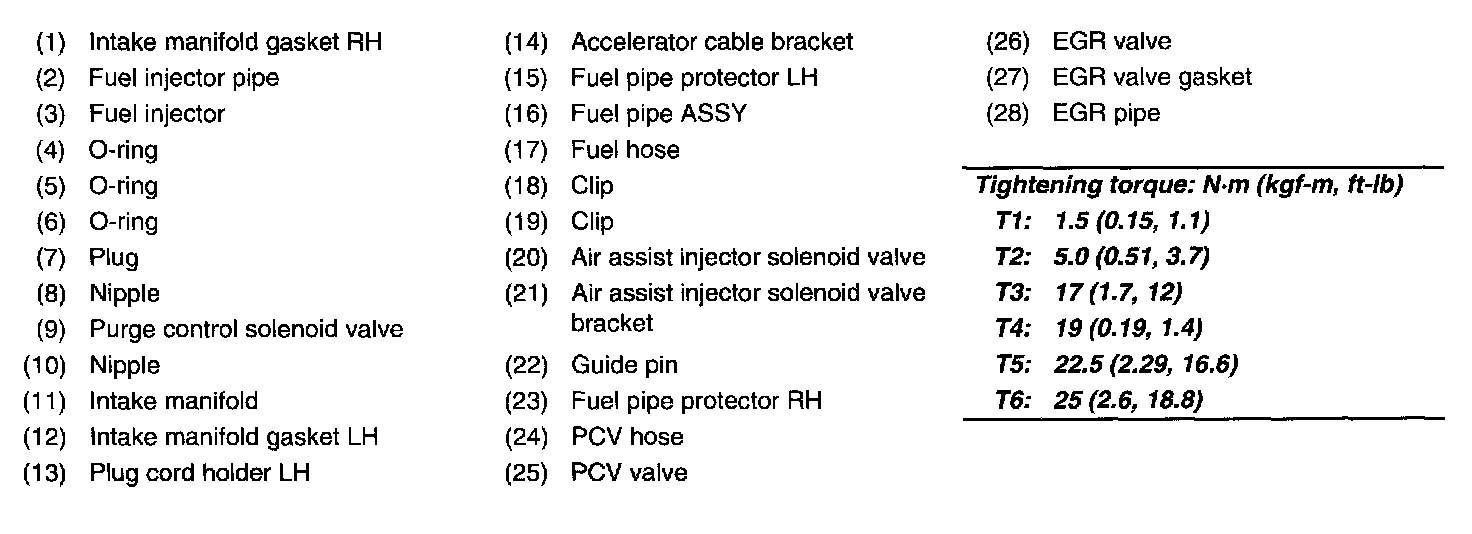 Tightening torque: 5.0 N.m (0.51 kgf-m, 3.7 ft-lb)