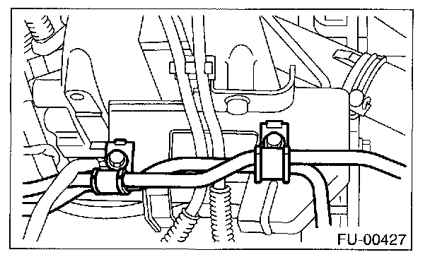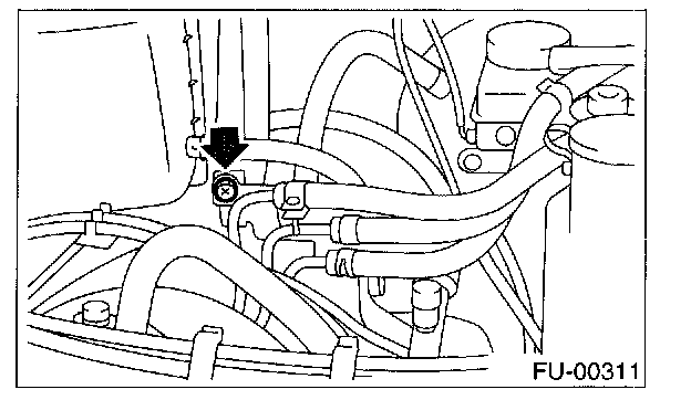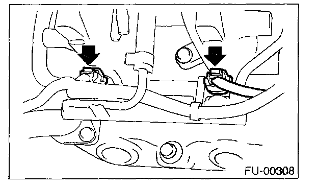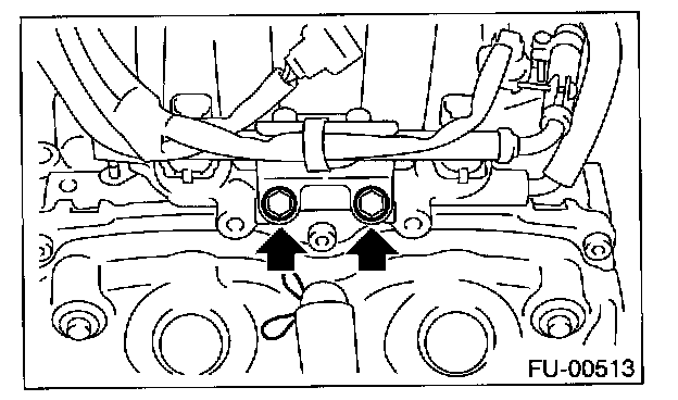 13. Remove bolt which holds fuel pipe on the left side intake manifold.