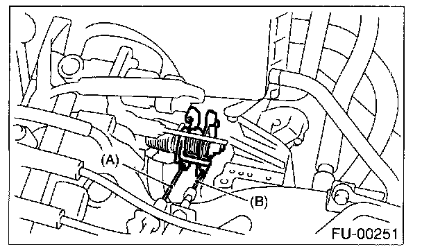 4. Disconnect cruise control cable (B). (With cruise control model)