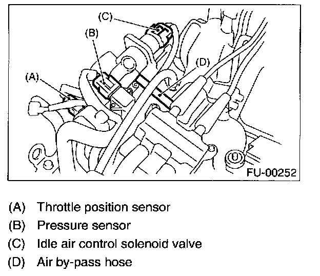5. Disconnect connectors from idle air control solenoid valve, throttle position sensor and pressure sensor.