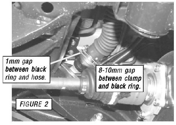 ^ Verify the edge of the hose damp is parallel and seated back 8-10 mm from the black ring on the filler pipe.