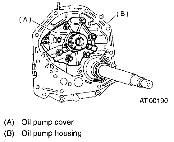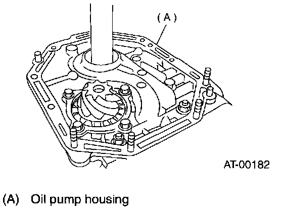 5. After correctly installing the new gasket to the case mating surface, carefully install the oil pump housing assembly. Be careful to avoid hitting the drive pinion against the inside of the case.