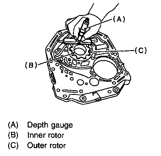 2. Side clearance Set a depth gauge to oil pump housing, then measure oil pump housing-to-rotor clearances.