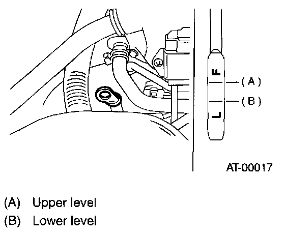 5. To prevent overfilling the differential gear oil, do not add oil above the "F" line.