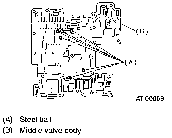 6. Insert six steel balls in their proper positions to middle valve body.
