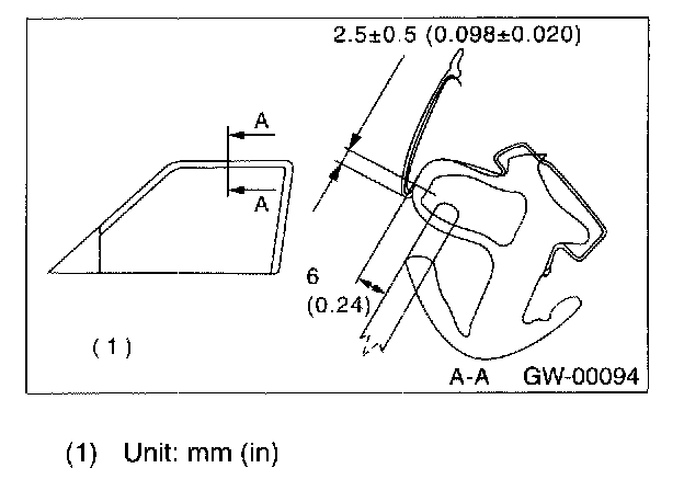 12. After adjustment of glass, if there is a gap between outer lip of gusset and glass surface, adjust the gap with adjusting bolt (A) in lower fitting part of gusset to prevent generation of wind noise.
