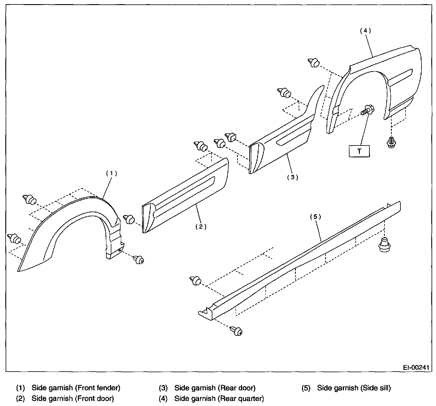 1. Attach masking tape to outer perimeter of side protector. (If original side protector is re-installed, tape the entire protector.)