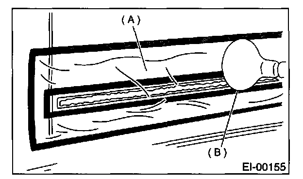 4. Attach plastic wrap (A) to adhesive remover coated areas and heat to 40 to 60°C (104 to 140°F) for 5 to 10 minutes using an infrared lamp (B).