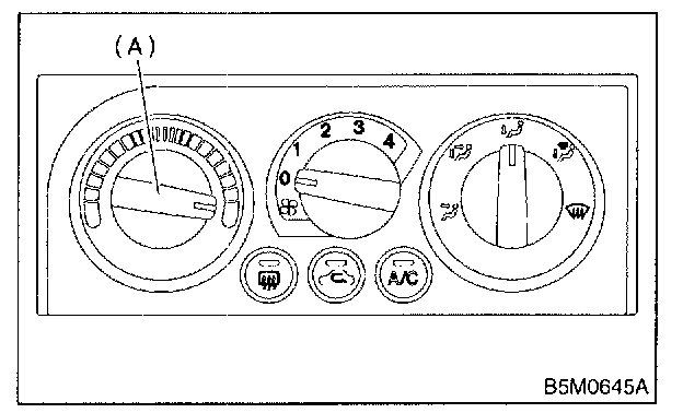 13. Set temperature control switch (A) to "FULL HOT" and then disconnect temperature control cable from bottom of heater unit.