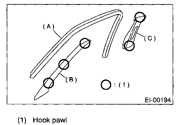 CAUTION: Be sure to securely hook pawls of inner trim panel to body flange.