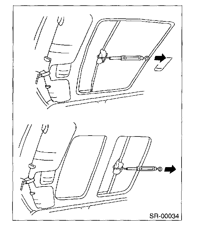 3. If the force required exceeds specifications, check the following points: Sunroof lid, sunshade and guide rail assembly for improper installation