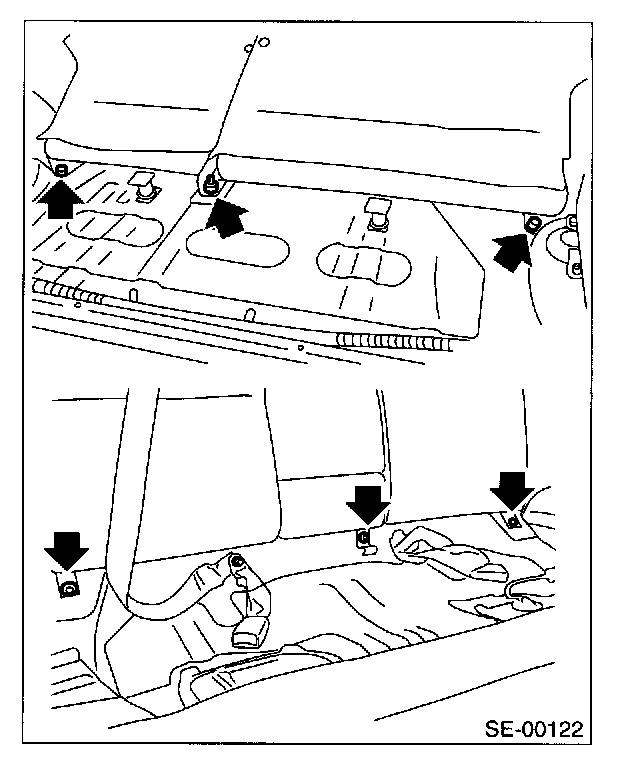 2. Remove bolts, and then remove rear seat cushion.