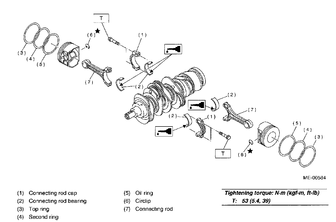 CAUTION: Apply oil to the surfaces of the connecting rod bearings.