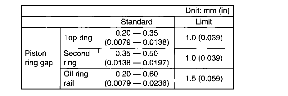 2. Squarely place piston ring and oil ring in cylinder, and measure the piston ring gap with a thickness gauge.
