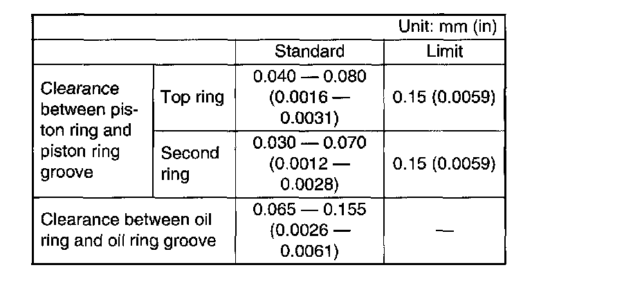 CAUTION: Before measuring the clearance, clean the piston ring groove and piston ring.