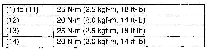(14) 20 Nm (2.0 kgf-m, 14 ft. lbs.)