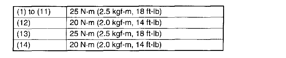 (1) to (11) 25 Nm (2.5 kgf-m, 18 ft. lbs.)