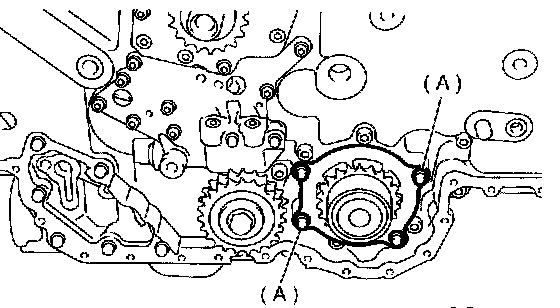 NOTE: When water pump cannot be easily removed, install M8 bolt in opposing bolt holes ("A" in figure). Alternately tightening each bolt should be enough to gradually free water pump from rear chain cover.