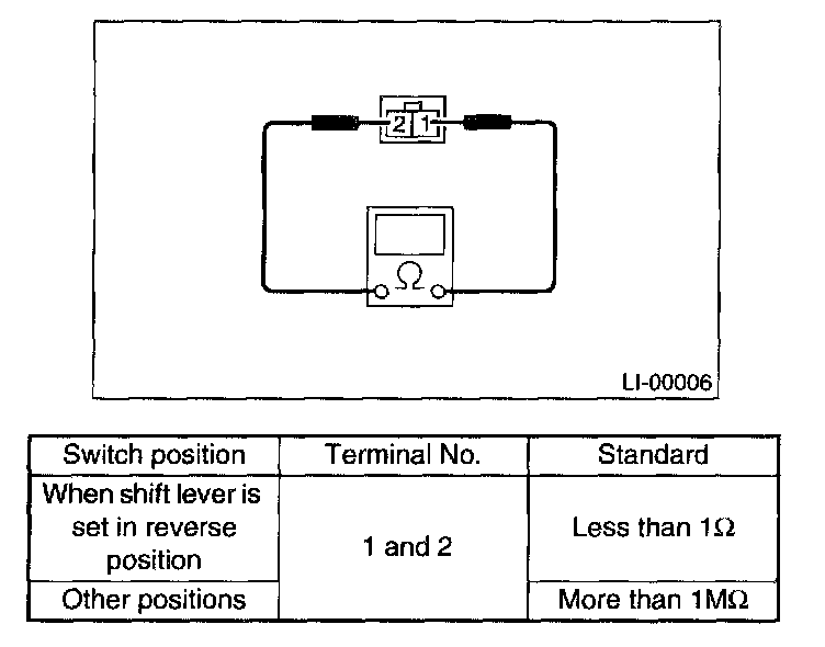 BACK-UP LIGHT SWITCH (M/T)Measure back-up light switch resistance.