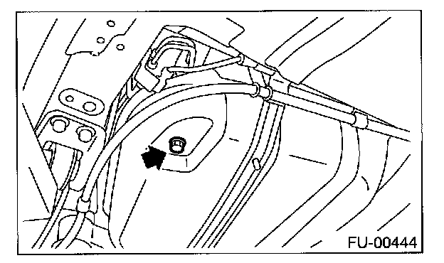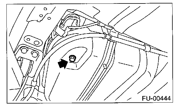 4. Drain fuel from fuel tank. Set a container under the vehicle and remove drain plug from fuel tank.