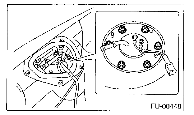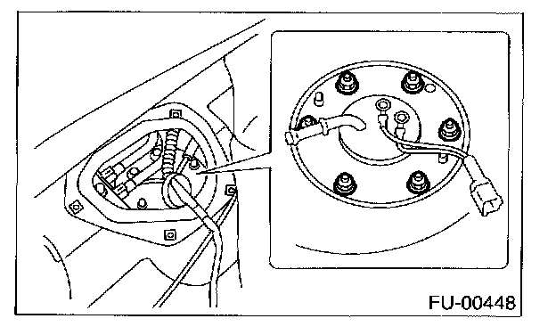 11. Remove bolts which install fuel sub level sensor on fuel tank.