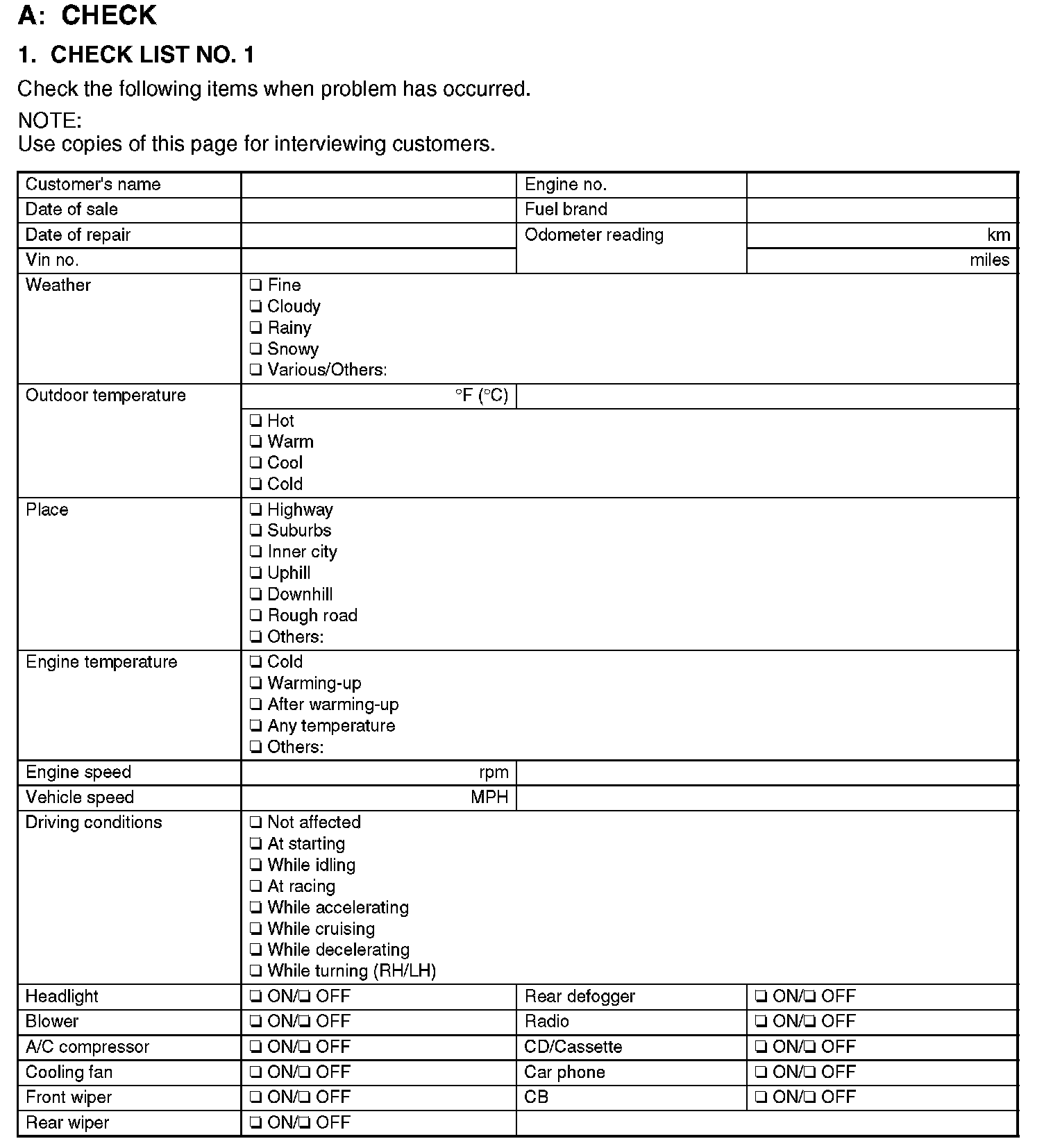 Check List No.1: