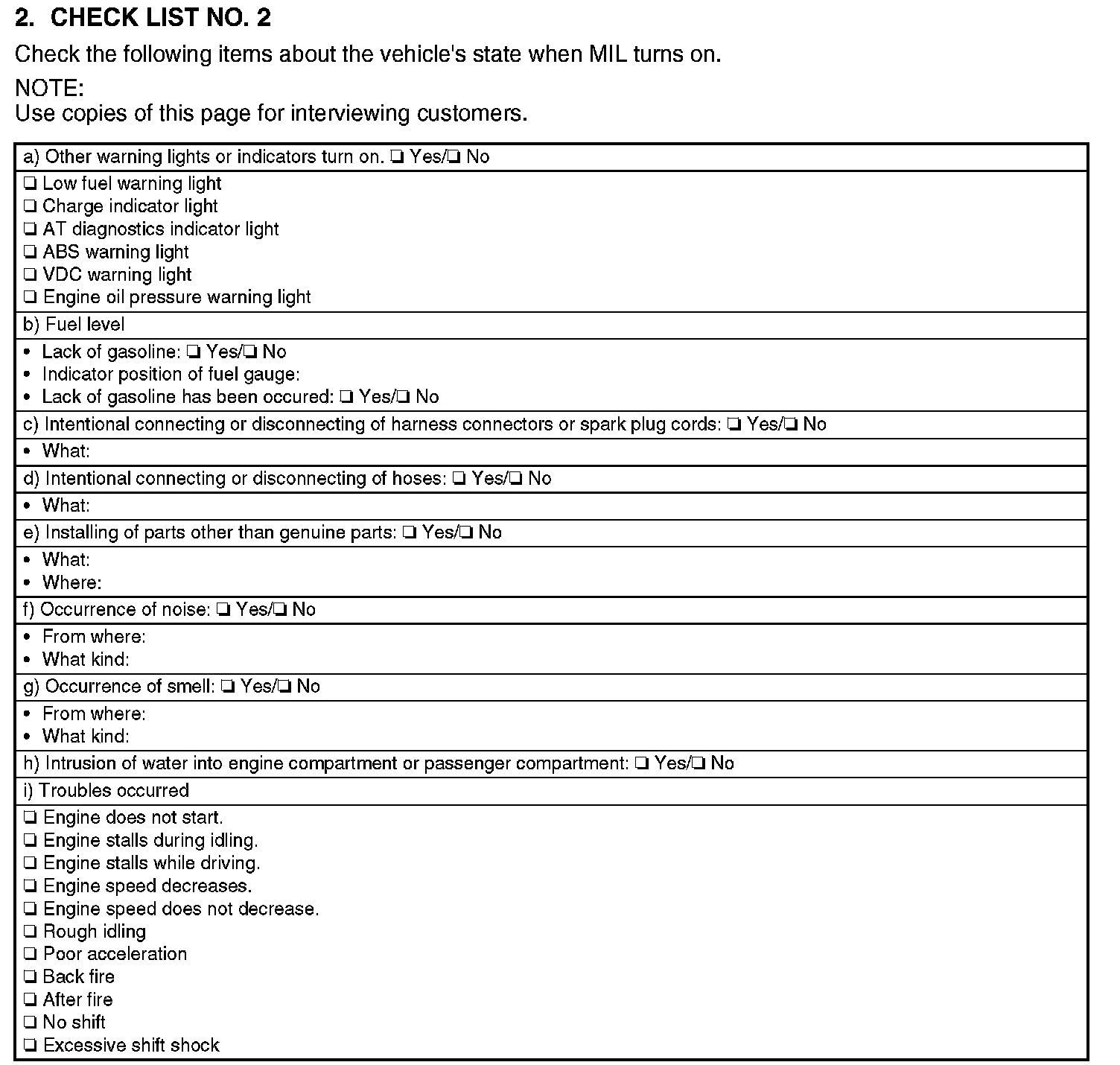 Check List No.2: