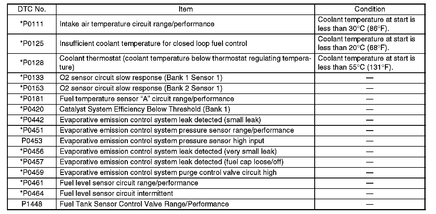 - Carry out diagnosis which is marked * on DTC twice, Then, after finishing 1st diagnosis, stop engine and do the second time at the same condition.