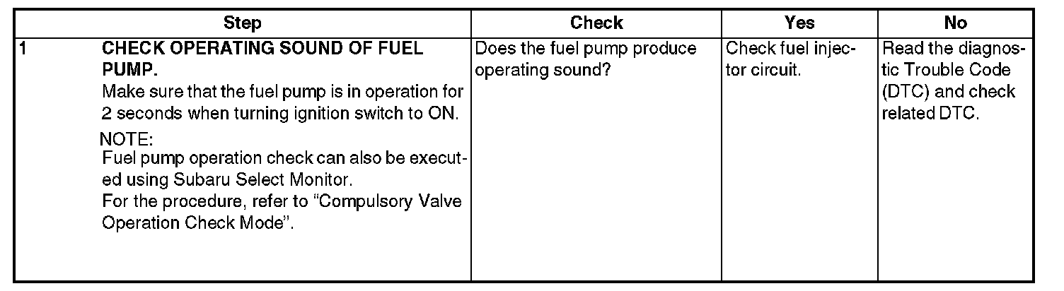 FUEL PUMP CIRCUITCAUTION: After repair or replacement of faulty parts, conduct CLEAR MEMORY MODE and INSPECTION MODE.