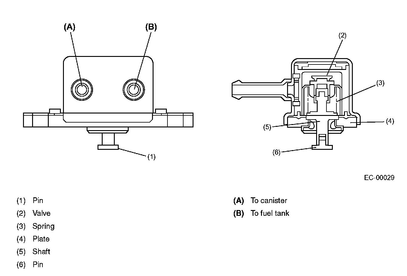 - Fuel vapors in the fuel tank is introduced into the canister through the evaporation line, and are absorbed by activated carbon in it. The fuel cut valve is also incorporated in the fuel tank line.